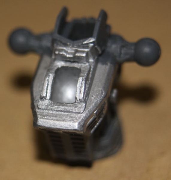 ハッチオープン状態です・・・下前方にスライドします、0.5mmの真鍮線でレールを作りビニール製リード線の被服がスライドします、それにハッチアーマーを固定する事で可動を実現しています。20年程前に「冥土さん」が考案した物を応用しました。