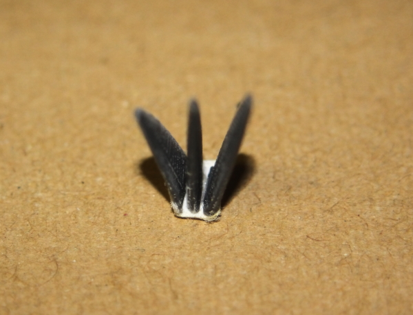 未だ思案中ですが可動部品として作ろうと思っていますので1枚ずつに分割した物を布テープに接着します(2枚目の写真を見ると閉じて居ますがテープがヒンジの役目をしますので開きます。