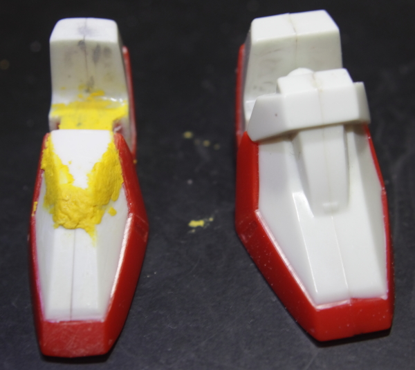 1/144MSZ-006「Zガンダム」HG R11.0 第11回です。 足首の変形機構を追加しました(幅詰は過去に) 黄色は加工前のポリパテです。 90度折れ曲がります、向かって右側が純正。 仕組みはつま先側に1mmの真鍮線でピンを踵側にタミヤのプラ棒「H型」と「コ型」を組み合わせレールにしました。 今夜も時間が来た様です。 http://hobhob3dmode.blog.shinobi.jp/zgundam/1-144msz-006%E3%80%8Cz%E3%82%AC%E3%83%B3%E3%83%80%E3%83%A0%E3%80%8Dhg%E3%80%80r11.01/144MSZ-006「Zガンダム」HG R11.0